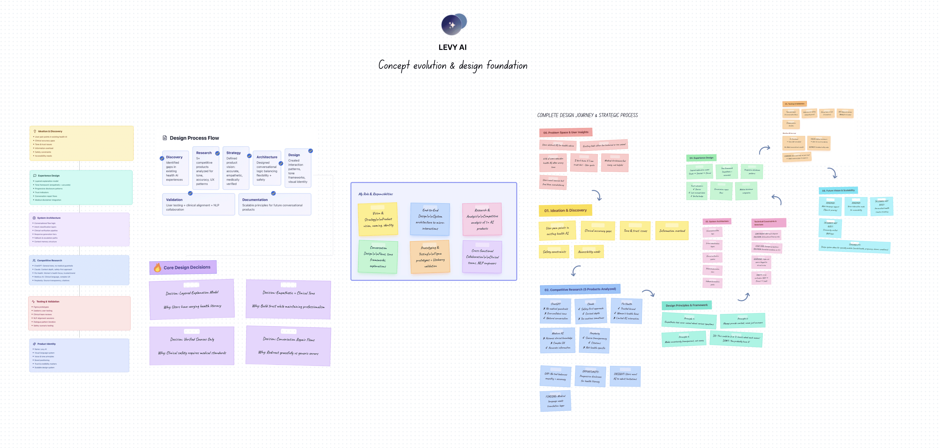 Levy AI was imagined as a translator. Every element needed to connect clinical accuracy with emotional intelligence. The design work began by mapping how users move from uncertainty to understanding. Tone, language, and structure were treated as design materials essential to the system’s foundation.