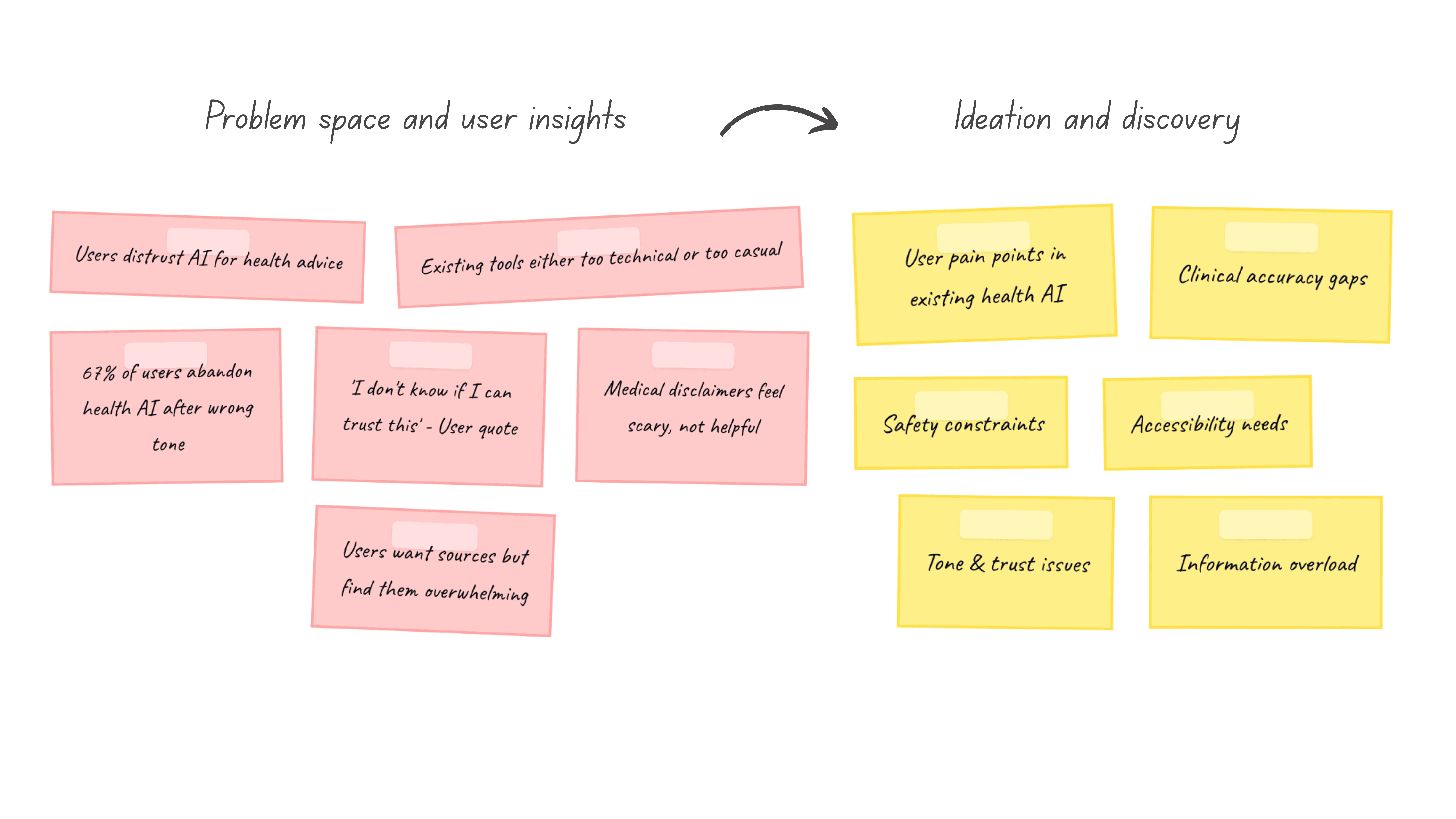 To ground the design direction, I conducted an in depth review of conversational and health platforms, mapping how they handle context, tone, safety, and credibility.
